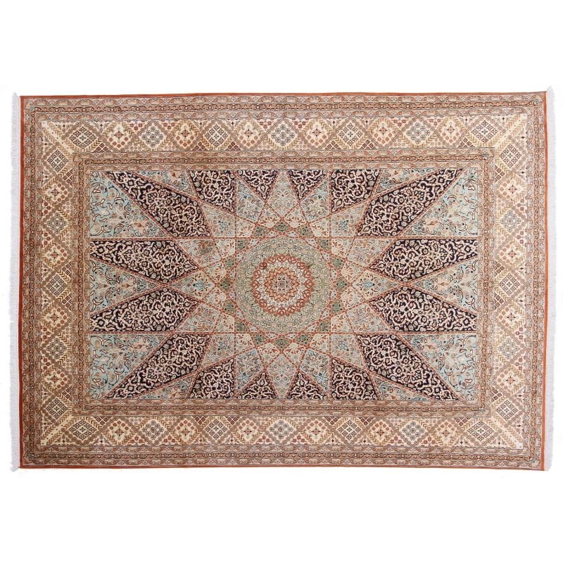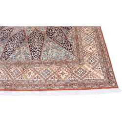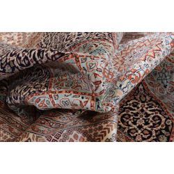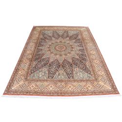 Hodvábny koberec ručne viazaný v Indii s nádherným vzorom, ktorý dodá interiéru veľkú dávku luxusu. Extra jemný a lesklý.