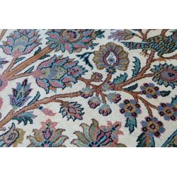 Viskózny koberec ručne viazaný v Indii s nádherným vzorom, ktorý dodá interiéru veľkú dávku luxusu. Svetlý kvetinový motív.