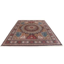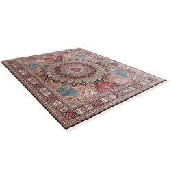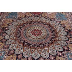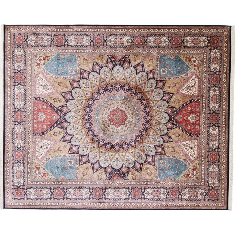 Ručne viazaný koberec v Indii s krásnym, jemným a dokonalým vzorom. Krásne pastelovo farebný. Tá farebnosť je naozaj úchvatná. Príjemný na dotyk, s leskom čo pôsobí v interiéri luxusne. Pri výrobe bolo použité veľké množstvo hodvábu zabezpečuje extra jemnosť, odolnosť a dlhú životnosť.