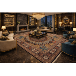 Krásny ručne viazaný veľký koberec do luxusnej obývačky.