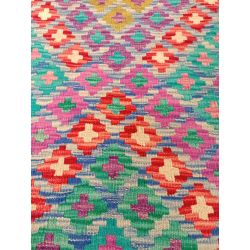 Vlnený obojstranný koberec, ručne viazaný v Afganistane. Vysoko odolný a veľmi tenký koberec tipu Kelim.