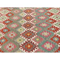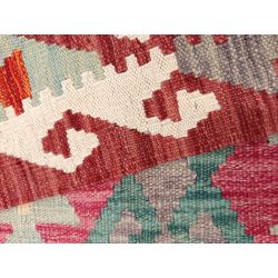 Vlnený obojstranný koberec, ručne viazaný v Afganistane. Vysoko odolný a veľmi tenký koberec tipu Kelim.