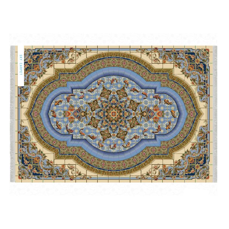 Iránsky hodvábny strojový koberec Hoz Naghsmi Qom