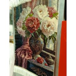 Strojový hodvábno modalový koberec na stenu zobrazujúci ružovú krásnu kyticu. Rozjasný každý priestor.